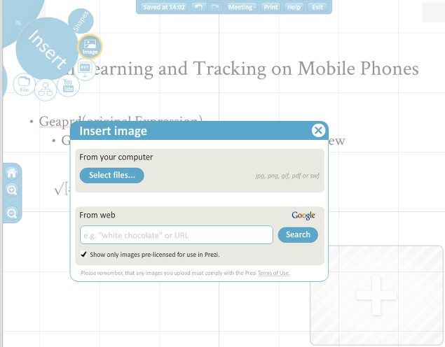 - 변경된 URL을 Prezi에서 Insert->Image->URL을 이용하여 첨부한다.