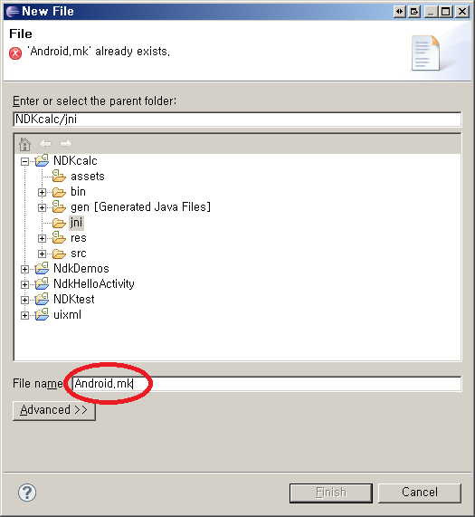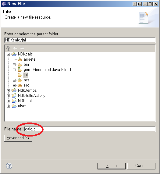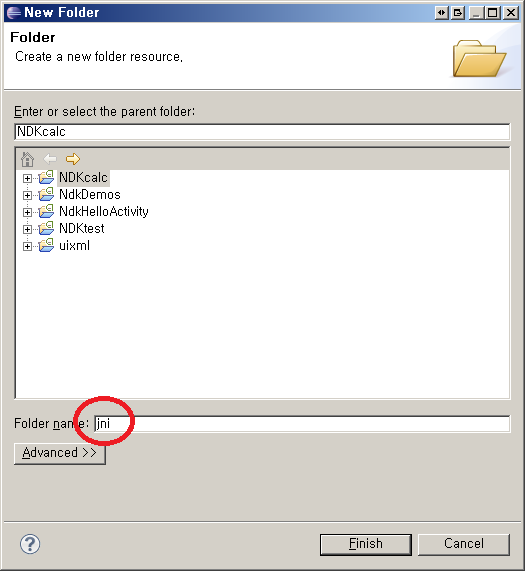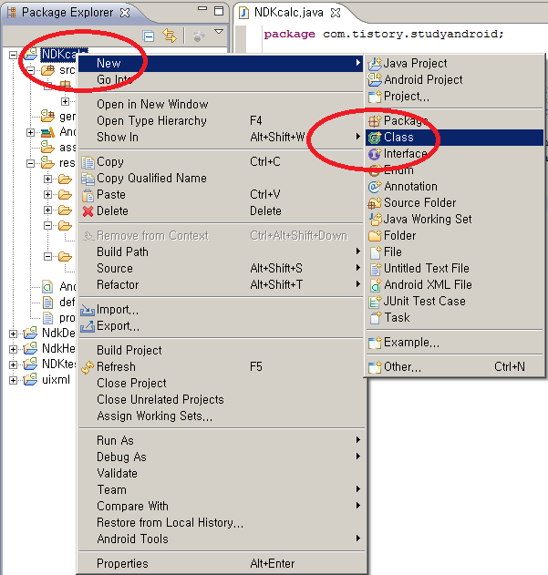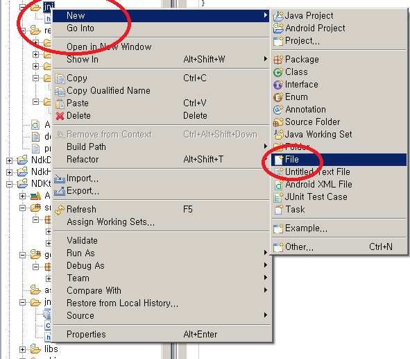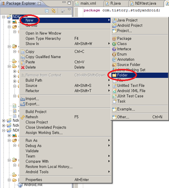 # 이제 NDKcalc Project 에서 jni 폴더를 하나 생성을 합니다.