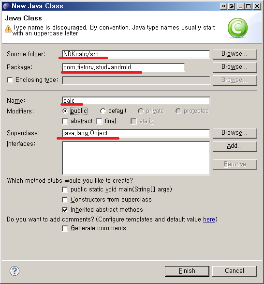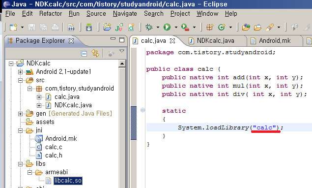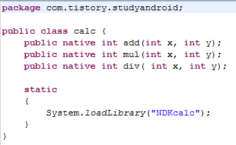 1. Header 파일을 생성하기위한 calc.java 파일과 생성되는 lib(header name).so 파일명은 일치해야한다.