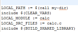 Android.mk 파일은 NDK가 make 파일을 이용하여 네이티브코드를 컴파일 하고 빌드할 때 참조하는 파일입니다. 위치는 위의 네이티브 코드가 존재하는 "$Project/jni" 폴더 내에 존재하여야 합니다.(참조[2])