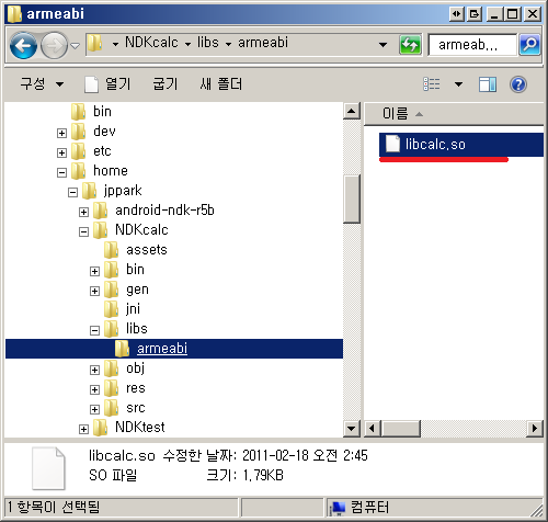 @: ㅡㅡ^ 아래의 그림을 보시면, 생성된 library 파일은 libcalc.so 입니다.
