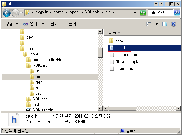 @ 즉, NDKcalc 라는 파일이름은 이미 현재 파일 추가가 되어있는 Zip 내의 내용입니다(과거의 내용).