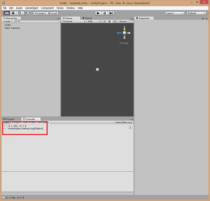 Debug.Log("r1 = " + r + ", " + "r2 = " + r2);