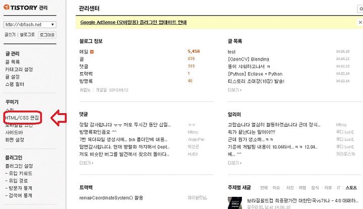 아무생각없이 티스토리에 스킨을 적용하였더니,